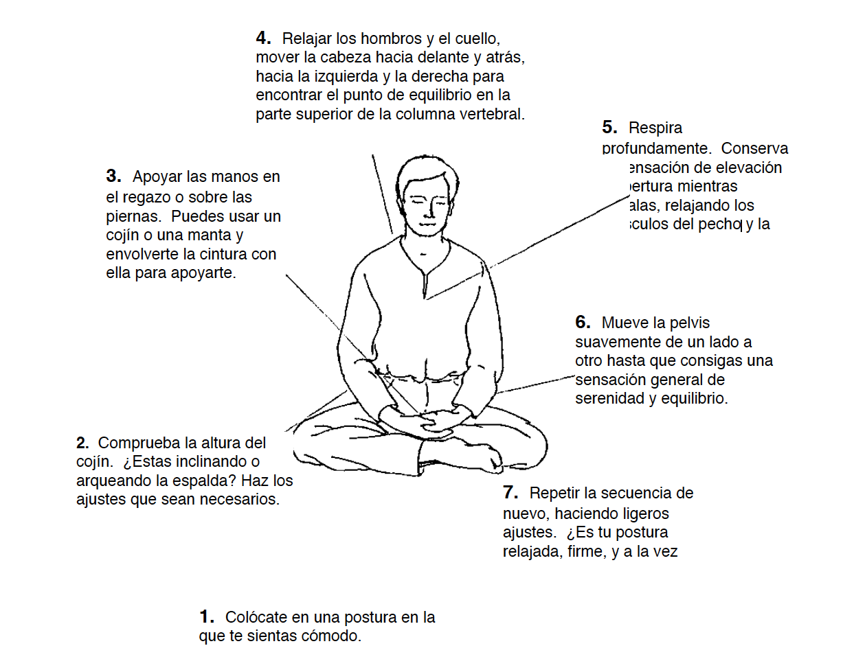 Con el paso de los días y la práctica de la meditación, fui aprendiendo a desapegarme de la mente, a “dominarla” desde la consciencia, a ser consciente de cuáles eran aquéllos pensamientos que se me dibujaban para decidir qué quería hacer con ellos. Para comenzar a trabajar este aspecto os recomiendo hacer un ejercicio práctico muy sencillo: contar de 20 a 0 con cada exhalación. Colócate en una postura cómoda. Aunque generalmente asociemos la meditación con la posición de loto, ésta no es imprescindible para meditar. Podemos meditar sentados, tumbados e incluso andando. Comparto con vosotros unas orientaciones para tener una postura correcta de meditación. Las imágenes son propiedad del Centro Budista Triratna de Valencia donde realicé un curso introductorio de mindfullnes y que recomiendo que visitéis.