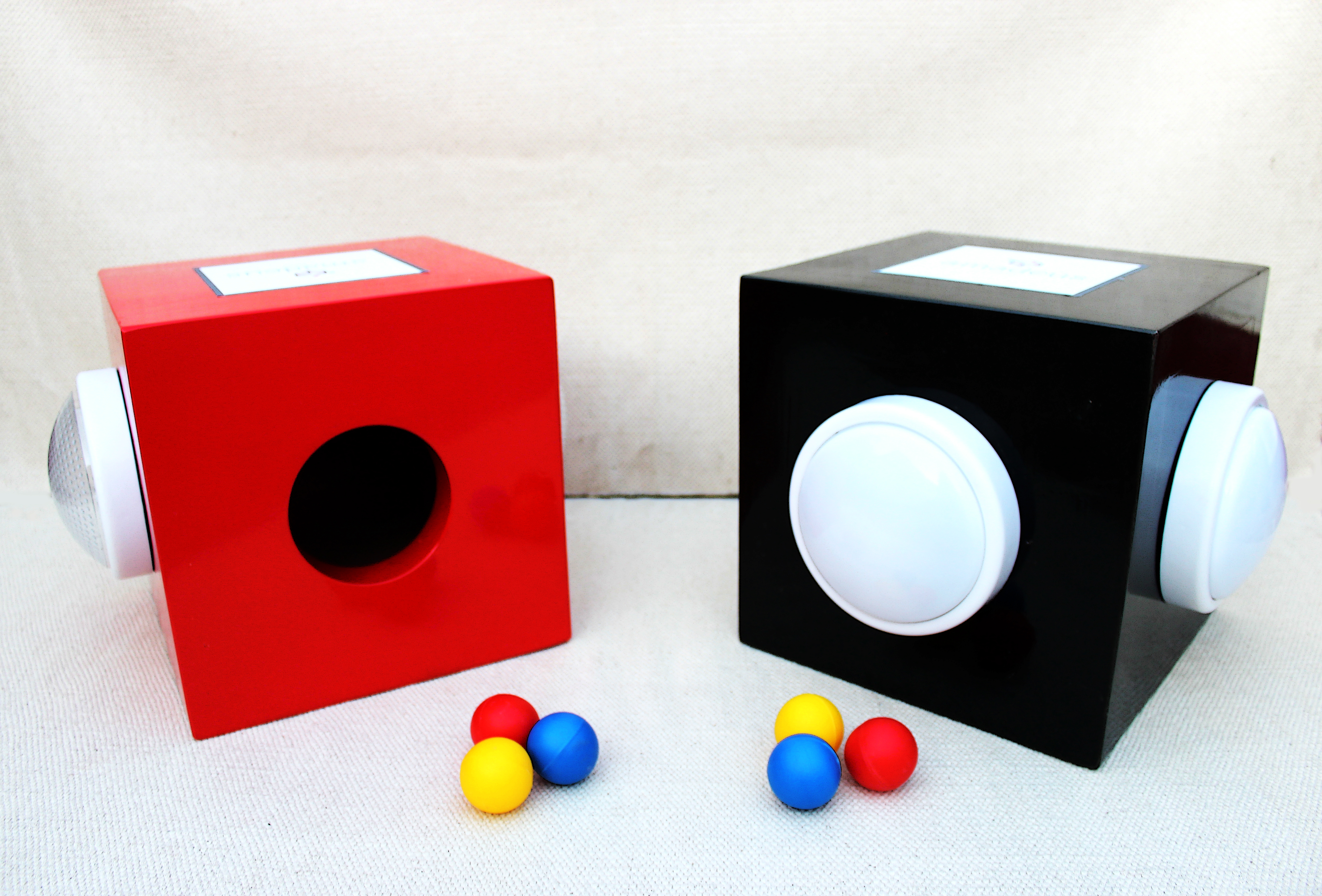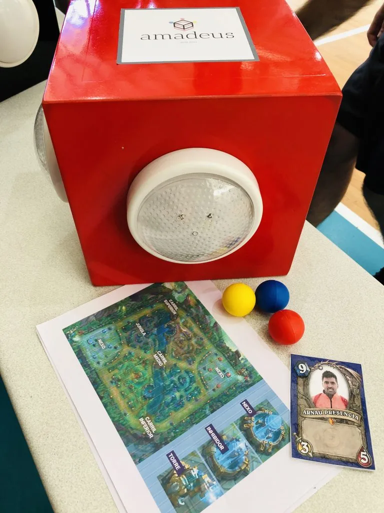 Junto a las cartas y el mapa, había las dos cajas “Amadeus”, las cuales tenían 3 pelotas (amarilla, roja y azul) dentro.