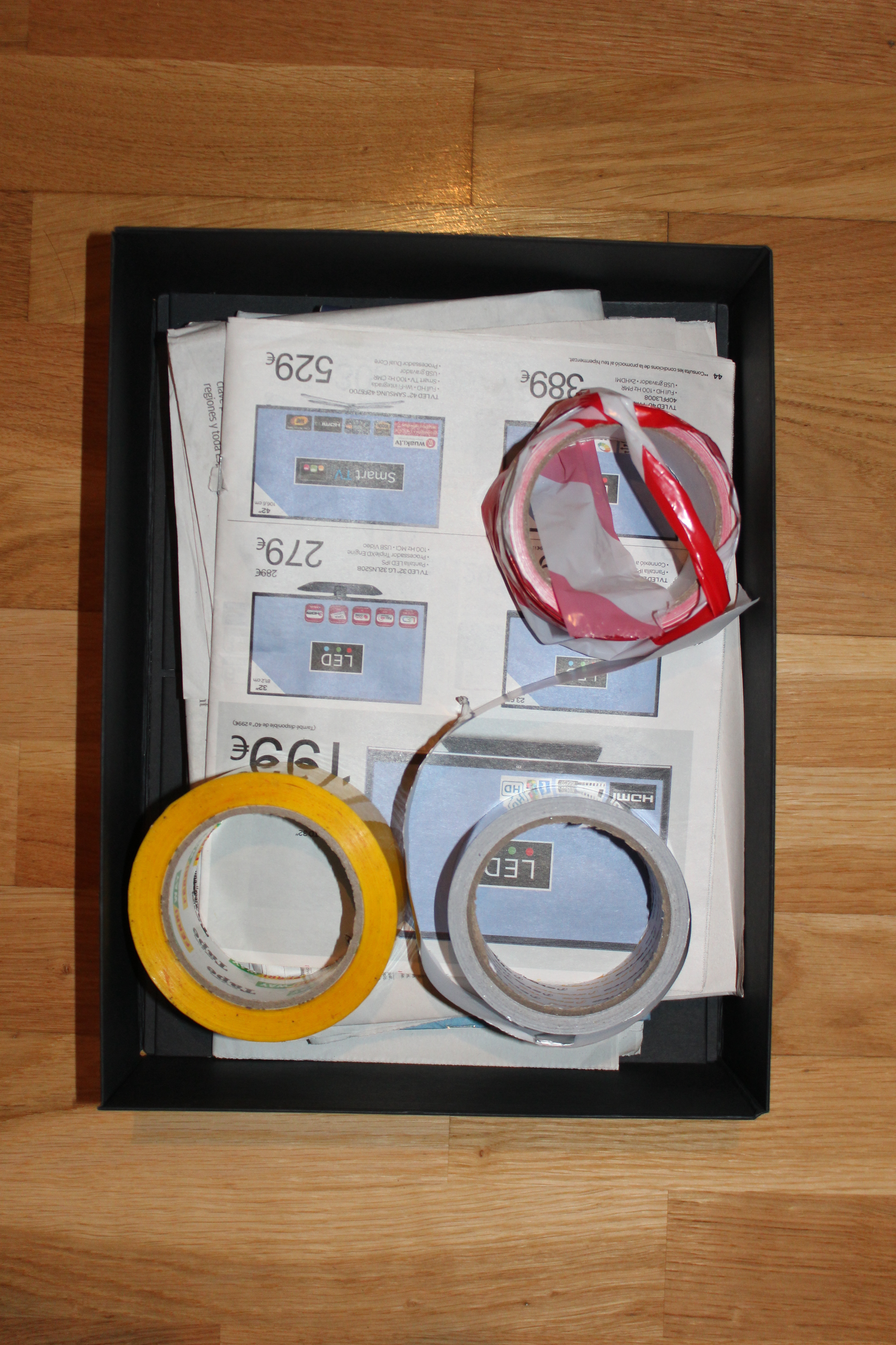 La única consigna que les di fue que no se podían abrir ni tocar las cajas. A partir de aquí les expliqué el juego. Los alumnos previamente habían hecho tres grupos de tres. Uno de cada grupo tenia que convertirse en un “buscador” responsable de buscar en todo el pabellón una bola de papel de color rojo. Mientras tanto, el resto de compañeros se dividía en dos equipos que hacían una guerra de bolas de papel con la finalidad de que en su campo hubiera la menor cantidad de bolas.