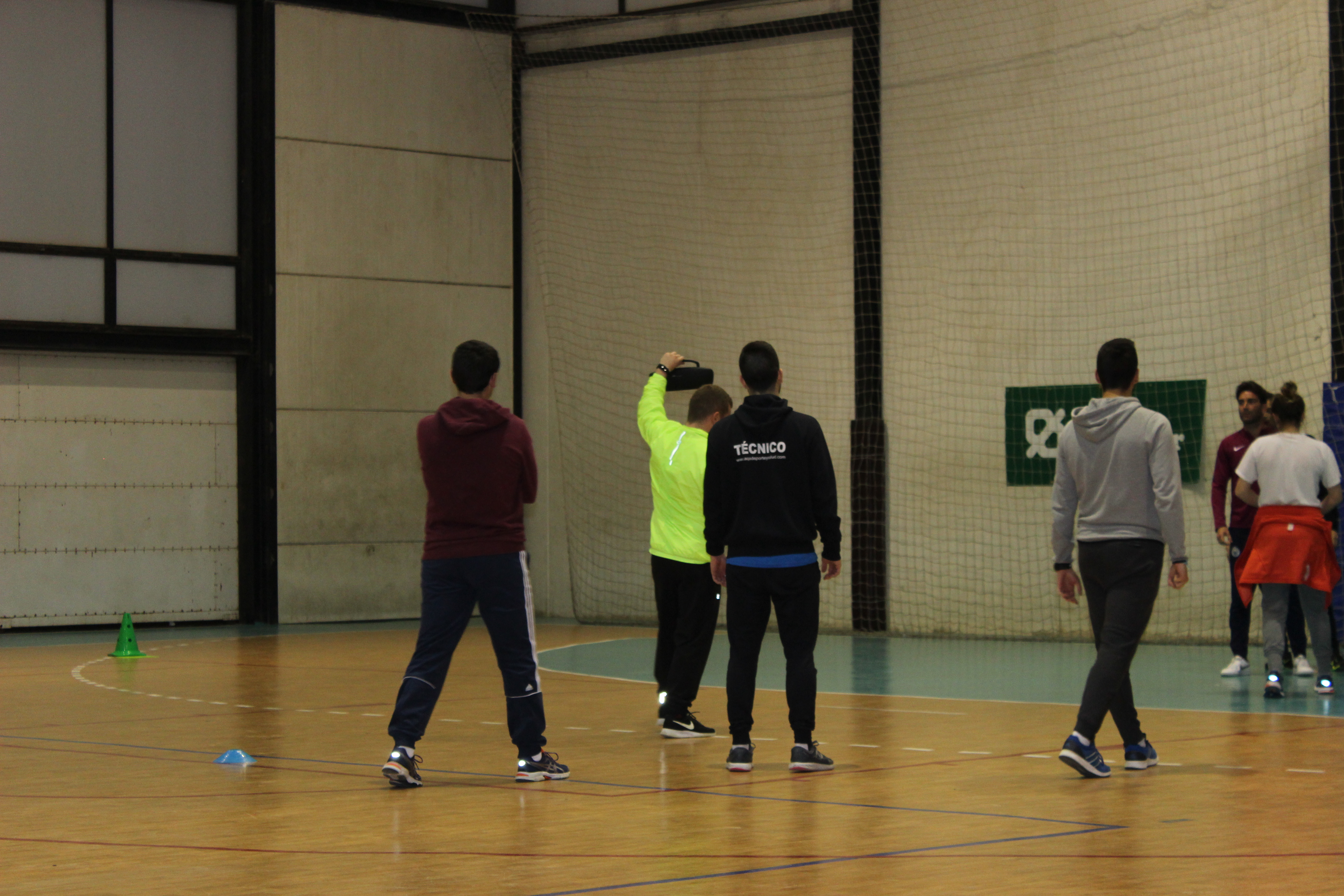 Nuestros alumnos se han basado en el concepto de sinestesia* para aplicarlo en una sesión de expresión corporal. Para ello, después de un calentamiento específico, han decidido poner unos conos de colores que contenían unas tarjetas con unas frases. Los “profes” llevaban un altavoz que emitía un sonido asociado a una nota (do, re, mi).